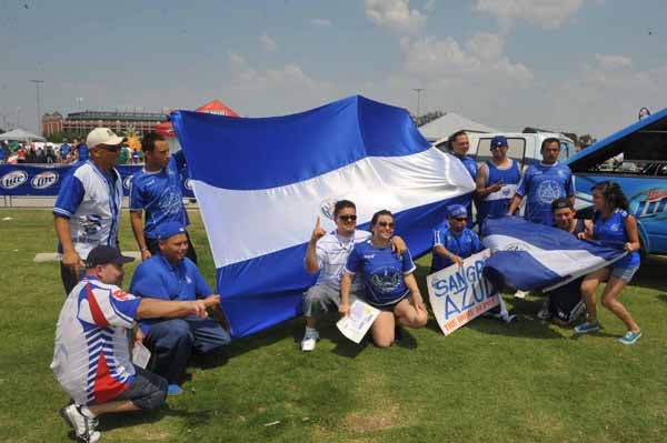 Aficionados portan con orgullo la bandera del El Salvador. FOTO: ULISES BRAVO