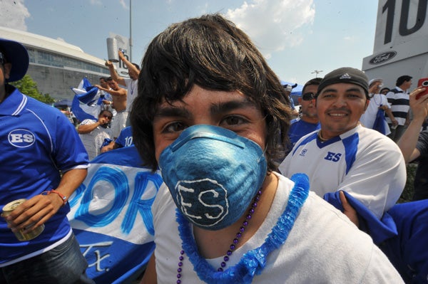 Los salvadoreños apoyan a su selección hasta con cubrebocas. FOTO: ULISES BRAVO