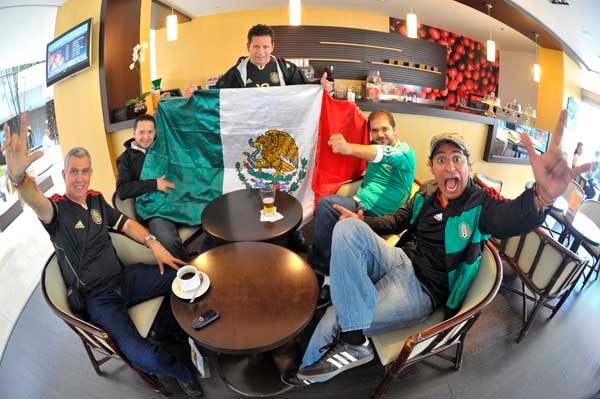 Mientras llega la hora, aficionados mexicanos recorren la ciudad con su bandera. FOTO: CIRO GUTIÉRREZ