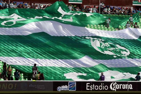 La bandera con colores de Santos no pueden faltar | MEXSPORT
