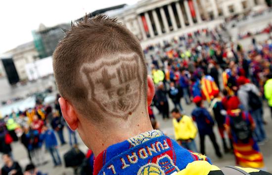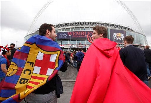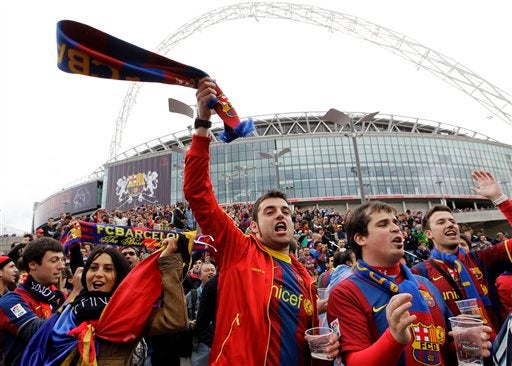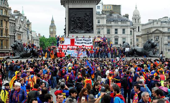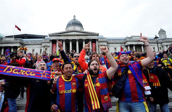 La afición blaugrana se hace presente en Inglaterra (FOTO: AP)