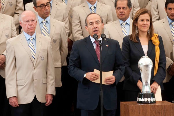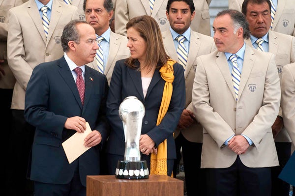 El club unversitario regaló una playera autografiada al mandatario. FOTO: CÉSAR VICUÑA