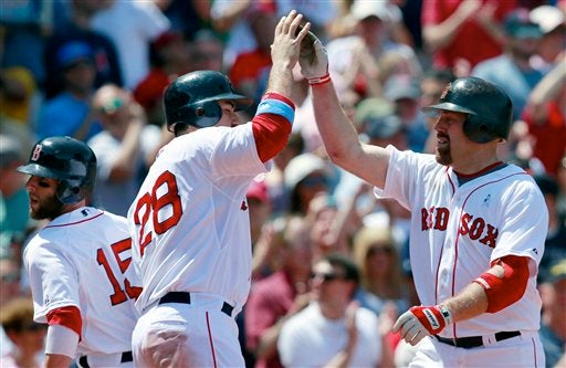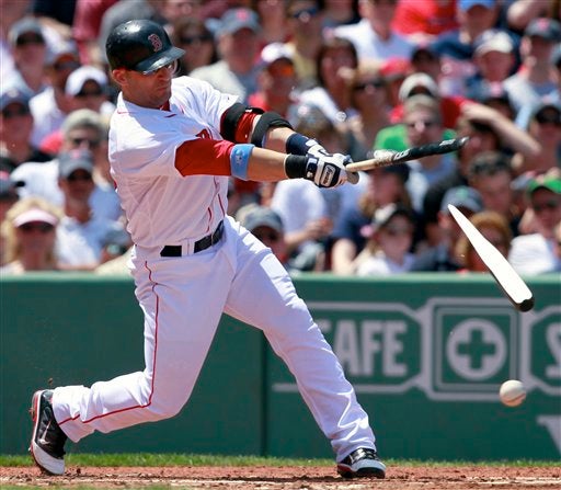 Marco Scutaro, de Boston, rompió el madero tras impactar la pelota. (FOTO: AP)