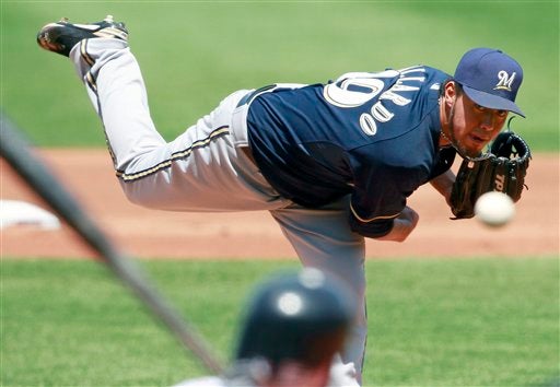 El Titán conectó triple ante otro mexicano, Yovani Gallardo, picher de Cerveceros. (FOTO: AP)