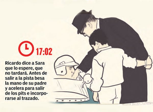 Antes de salir, besa la mano de su padre y acelera para los pits. | INFOGRAFÍA: CHRISTIAN AVALOS