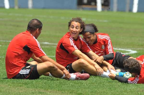 Gio, Guardado y Salcido bromean durante el entrenamiento (FOTO: ULISES BRAVO)