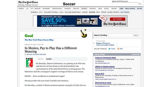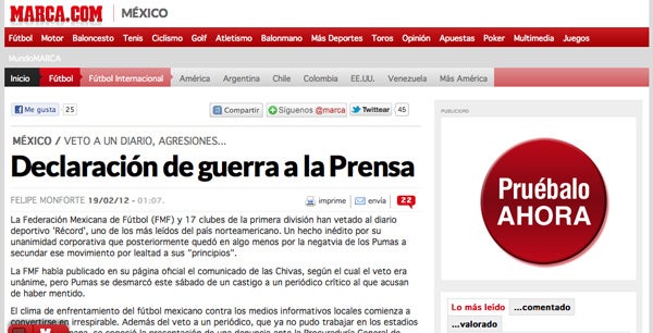 Terra publicó la nota sobre el veto de la Femexfut