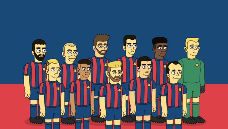Los jugadores titulares de las plantillas del Barcelona, Real Madrid, Manchester United y Juventus fueron caricaturizados al estilo amarillo de los Simpsons.