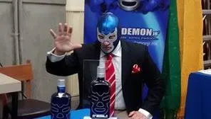 El luchador Blue Demon Jr presentó oficialmente la línea de mezcal que lleva su nombre.