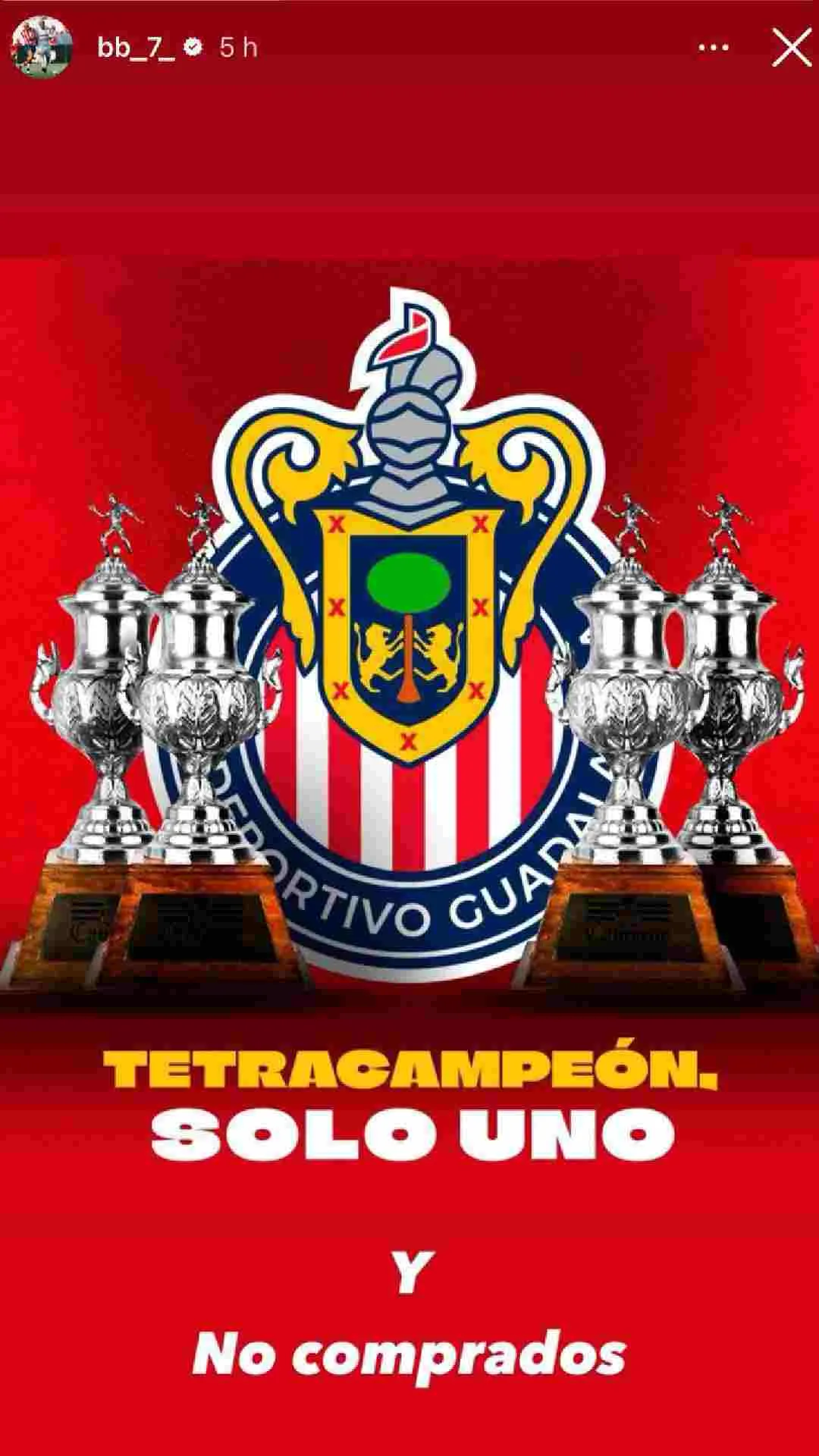 El exjugador de las Chivas Rayadas del Guadalajara dejó una contundente imagen en una historia desde su cuenta de Instagram con el escudo del Rebaño y los cuatro trofeos conseguidos a finales de los años 50’s y principios de los 60's.