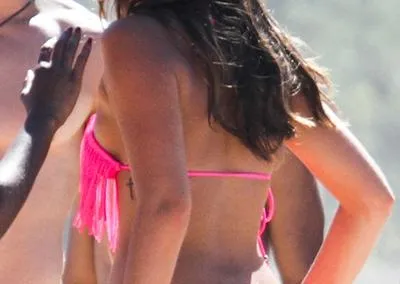 Con un bikini rosa, Bruna acaparó las miradas durante el rodaje, mientras que algunos medios especulan con una posible reconciliación con la estrella del club blaugrana.