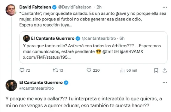 Una vez más dos de los personajes más controversiales en redes sociales se han hecho presentes para volver a levantar la polémica. David Faitelson y el exárbitro Fernando 'Cantante' Guerrero, han desatado una serie de tuits 'atacándose' uno al otro a partir de los comentarios de un tema en particular: el comunicado de Katia Itzel García.