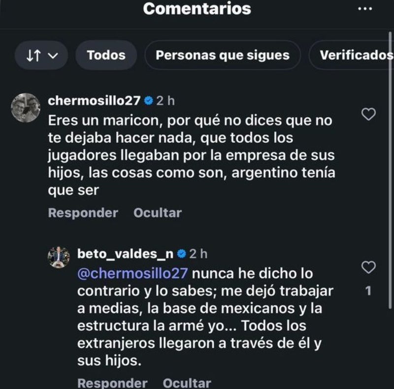"Eres un maricón, por qué no dices que no te dejaba hacer nada, que todos los jugadores llegaban por la empresa de sus hijos, las cosas como son, argentino tenía que ser", escribió el exfutbolista mexicano, señalando directamente a Fassi y a sus hijos en un posible conflicto de intereses con la llegada de jugadores extranjeros.