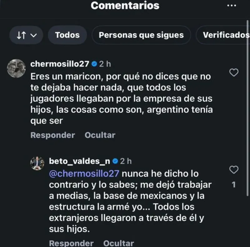 Pese a la eliminación del tuit de Hermosillo, Humberto Valdés alcanzó a responder al fuerte señalamiento. Lejos de contradecir al "Grandote de Cerro Azul", el exdirectivo de Juárez pareció confirmar parte de sus acusaciones, matizando su propia injerencia en el armado del equipo.