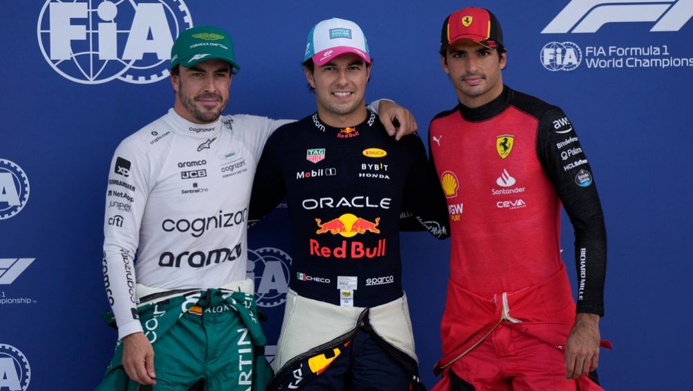 Checo Pérez, Fernando Alonso y Carlos Sainz saldrán desde las primeras tres posiciones para la carrera de este domingo en Miami.