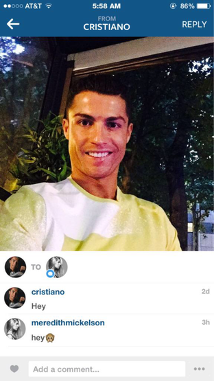 Meredith Mickelson, una joven modelo estadounidense, ha causado conmoción en internet al revelar que Cristiano Ronaldo le invitó a iniciar una conversación a través de Instagram; la polémica se desató al darse a conocer que cuenta con apenas 16 años.