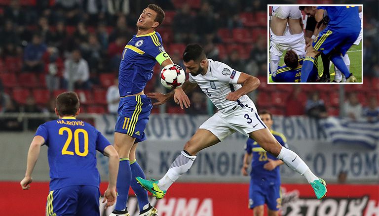 En el duelo de las Eliminatorias de la UEFA entre las selecciones de Bosnia y Grecia sucedió una hecho muy particular, un jugador se quedó en ropa interior después de que un rival le bajara el short.