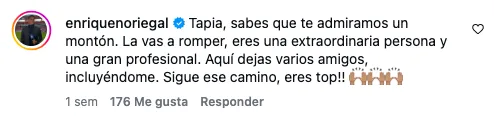 También, en la sección de comentarios, uno de sus excompañeros en Prime Video, Antonio Camacho, le dedicó unas palabras con el motivo de su salida de la plataforma: "Vuela alto, rómpela como mereces, crack", palabras que fueron malinterpretadas por un pequeño sector del público.