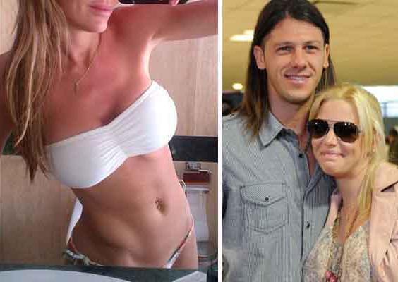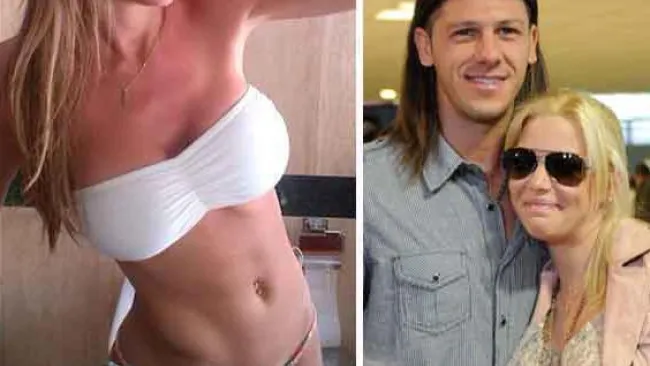 La actriz y modelo Evangelina Anderson, mujer del jugador del City, Martín Demichelis, publicó en Twitter una fotografía suya en bikini blanco frente al espejo del baño.