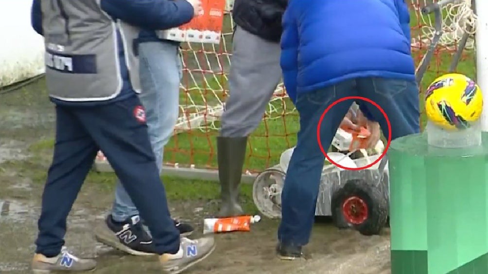 Un momento insólito se vivió en la Segunda División del futbol portugués y es que, los organizadores se quedaron sin cal para pintar las líneas del campo y tuvieron que ir por leche para solucionar el problema.