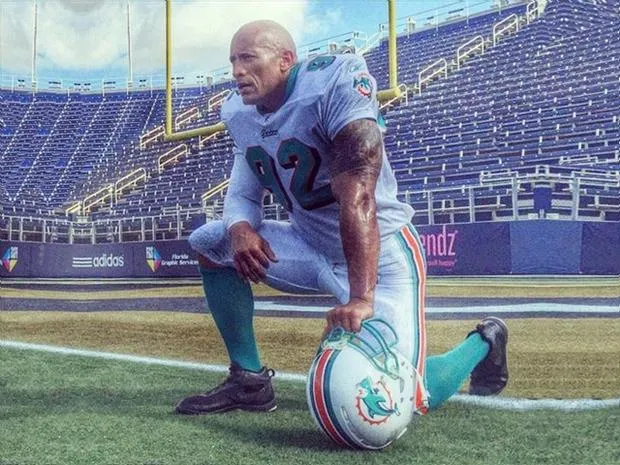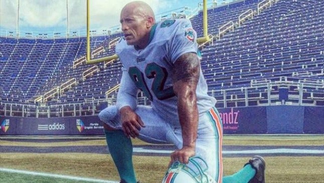 La estrella de la WWE, La Roca, publicó una imagen en Instagram en la que aparecía vestido con el uniforme de los Delfines de Miami.