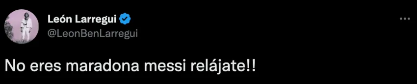 “Es un héroe, eso sí, que pa’ tener a este equipo de cuarto donde está. Con la ayudadita de la FIFA y las marcas, claro está. No eres Maradona, Messi. Relájate”, expresó el cantautor en su cuenta de Twitter.