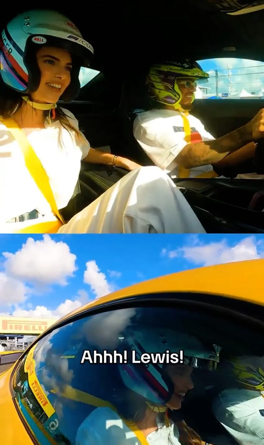 Entre risas nerviosas, Jenner gritaba: "Aaah, Lewis. Esto es una locura. Te odio. Ok, ok, eres muy bueno, te creo", expresó la modelo estadounidense mientras que el piloto de Mercedes, que correrá en Ferrari el próximo año, desaceleraba y volvía a arrancar a máxima velocidad.