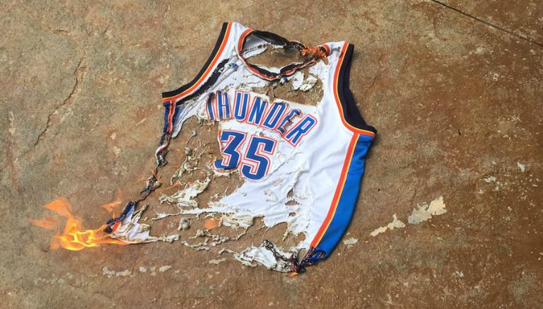 En claros actos de rabia, algunas personas decidieron publicar en redes sociales fotos y videos de como prendían fuego a los jerseys del exelemento del Thunder.