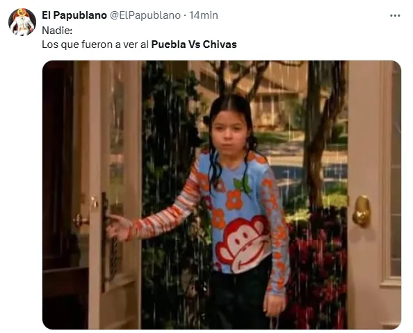La Liga MX ha vuelto a vivir una desafortunada situación después de que el partido entre Puebla y Chivas se tuviera que suspender debido al mal clima que se vivió alrededor del Estadio Cuauhtémoc, por lo que las redes han comenzado a 'arder' por la gran cantidad de memes que se han publicado acerca de la situación.