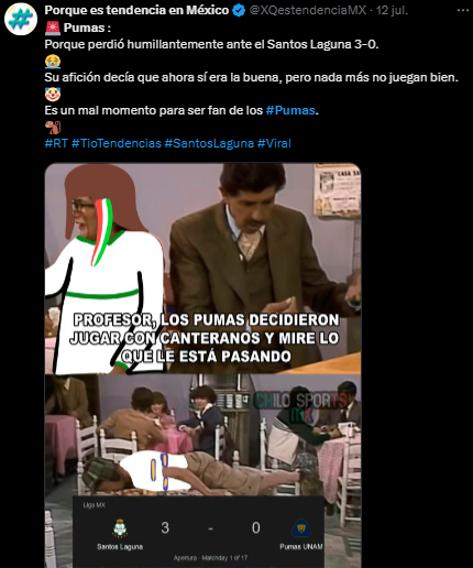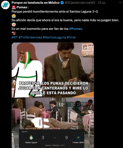 Otro que también se llevó la molestia de los aficionados fueron los Pumas quienes visitaron a Santos Laguna y terminaron pagando sus errores con un contundente 3-0, los Universitarios esperan la llegada de Keylor Navas para parar las críticas.