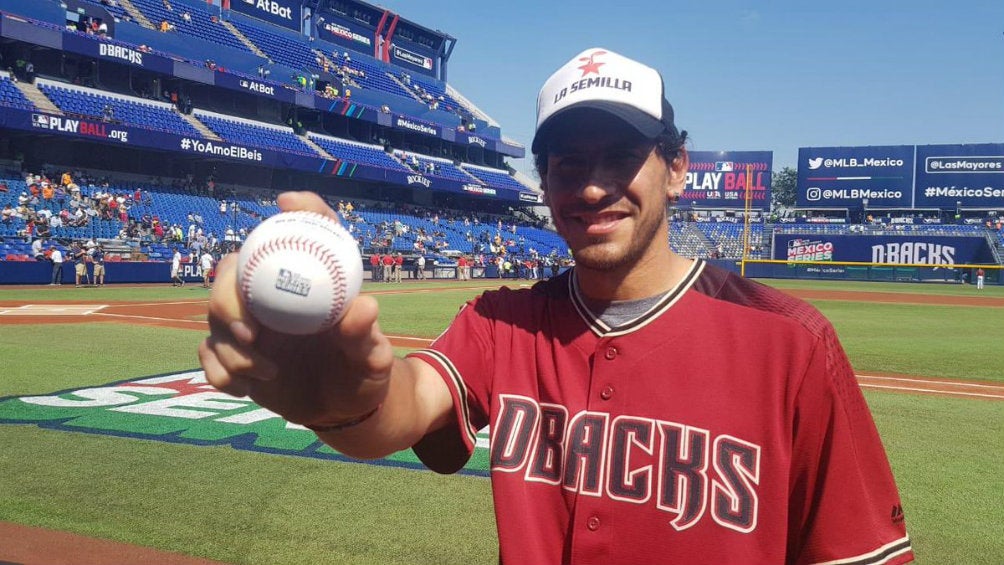 Después de disputar el Clásico Regio, Nahuel Guzmán, portero de Tigres, fue el encargado de lanzar la primera bola previo al segundo juego de la México-Series entre Arizona Diamondbacks y Colorado Rockies.