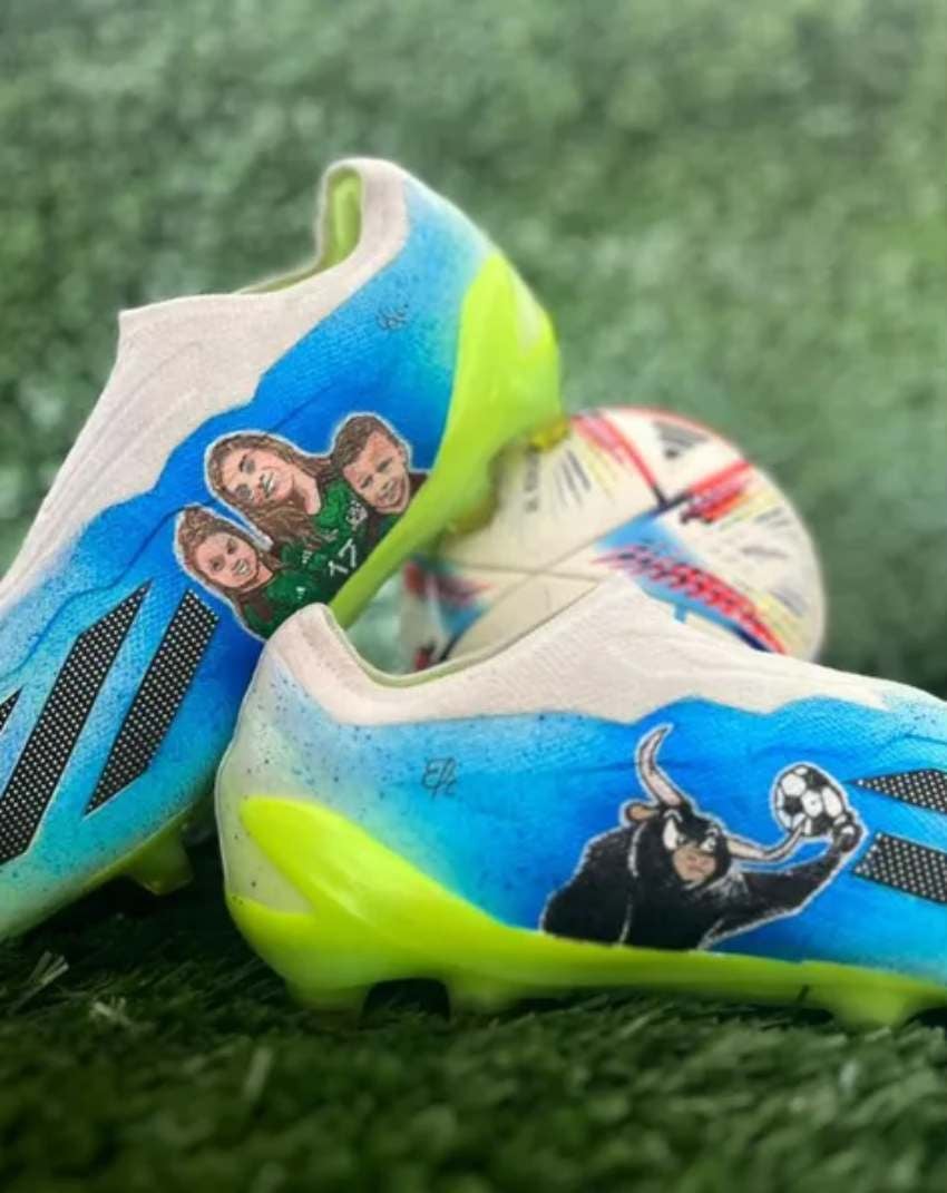 En su calzado, Orbelín Pineda ha inmortalizado su pasión por el jaripeo, con un toro imponente pintado de manera impresionante en sus botines. Este diseño no solo es un tributo a su amor por el deporte del rodeo, sino también una representación simbólica de su determinación y valentía en el campo de juego. Pineda está listo para enfrentarse al Brighton con un calzado que cuenta su historia personal y deportiva.