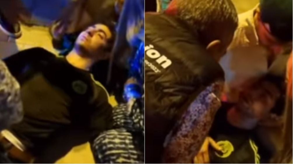 El connacional se nota totalmente fuera de sí. Sus acompañantes trataron de reincorporarlo por su cuenta.