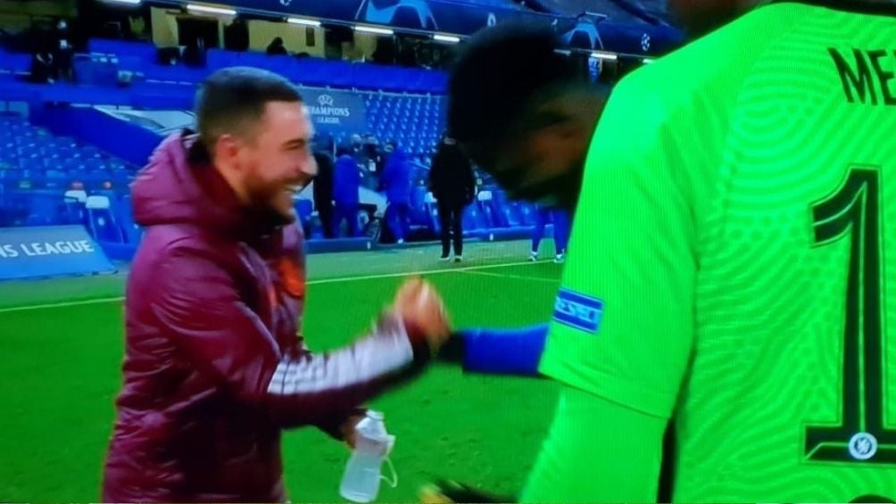 Eden Hazard fue captado al finalizar el partido sonriendo y conviviendo con sus excompañeros del Chelsea, imágenes que provocaron la indignación en redes sociales.