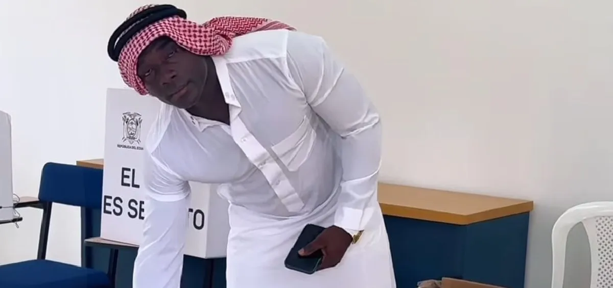 Así es el exjugador ecuatoriano acudió a uno de los centros de votación para estampar su votación y sorprendió al ingresar vestido de blanco un turbante rojiblanco así fue la casilla para emitir su voto secreto.