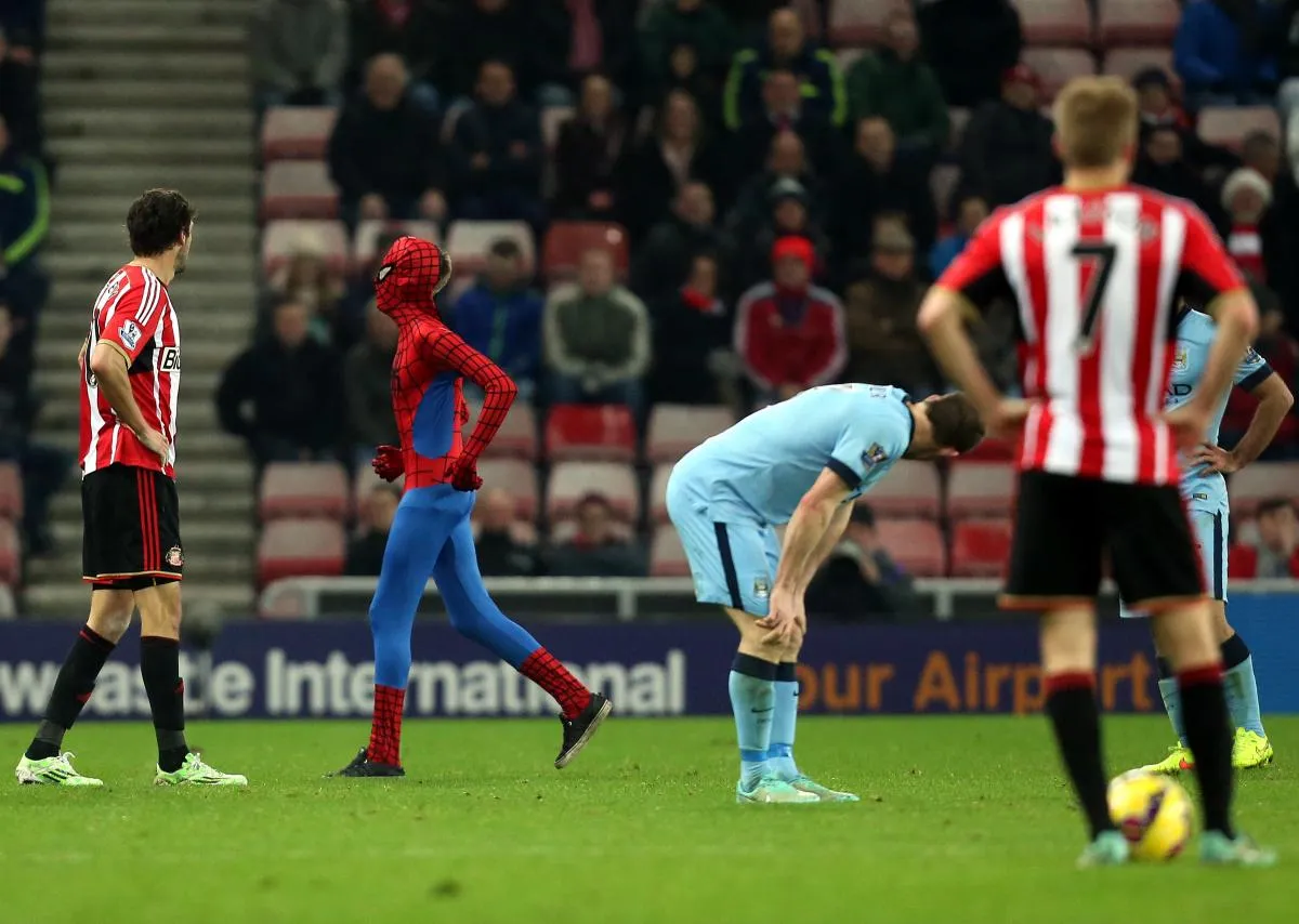 Spiderman hizo una aparición especial en el Estadio de la Luz, donde Manchester City jugó en la Jornada 14 de la Liga Premier de Inglaterra y venció a domicilio 4-1 al Sunderland.
