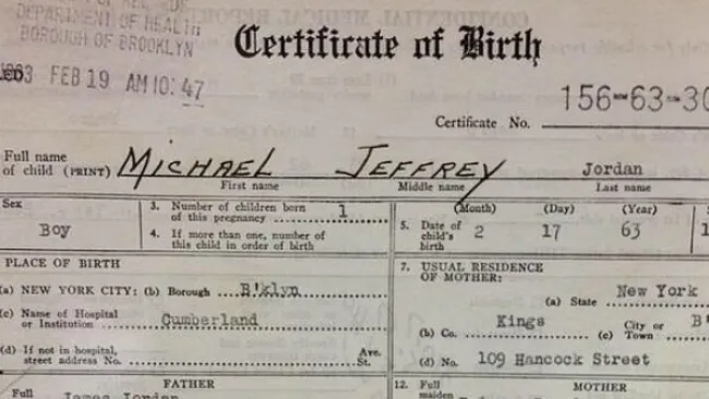 Subastan acta de nacimiento de Michael Jordan
