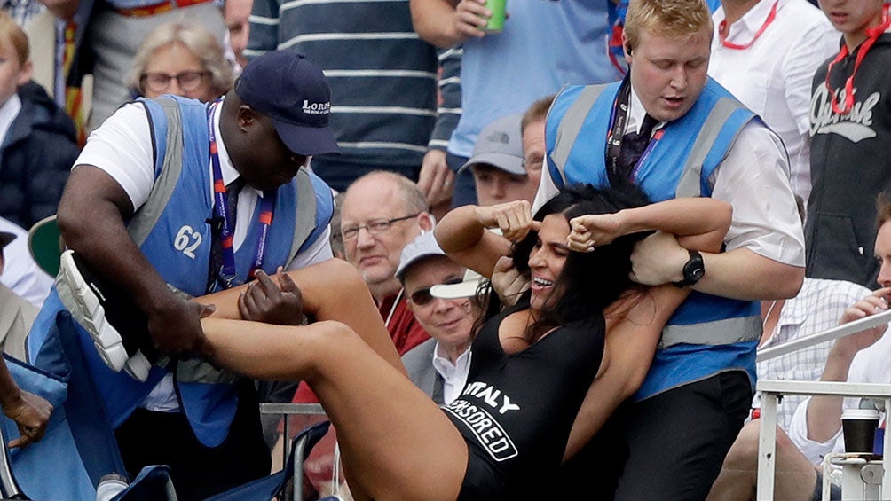 Ahora su suegra, Elena Zdorovetskiy trató de hacer lo mismo en la Final del Mundial de Criquet que se llevó a cabo en Inglaterra, aunque fue detenida por la seguridad antes de llegar al campo.