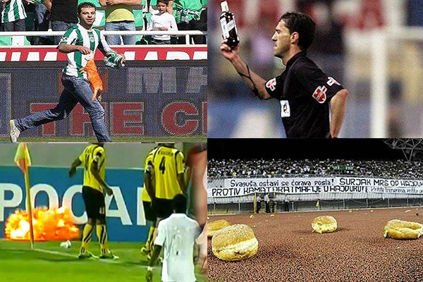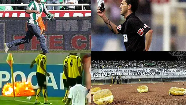En 2008 un partido chipriota de la Premier League tuvo que ser detenido después de los aficionados arrojaron a la cancha conejos muertos pintados con aerosol.