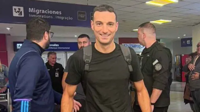 El aeropuerto internacional de Ezeiza se 'vistió' de albiceleste hoy cuando Lionel Scaloni, director técnico de la Selección Argentina, llegó para prepararse de cara a los enfrentamientos en las Eliminatorias de Conmebol rumbo al Mundial 2026.
