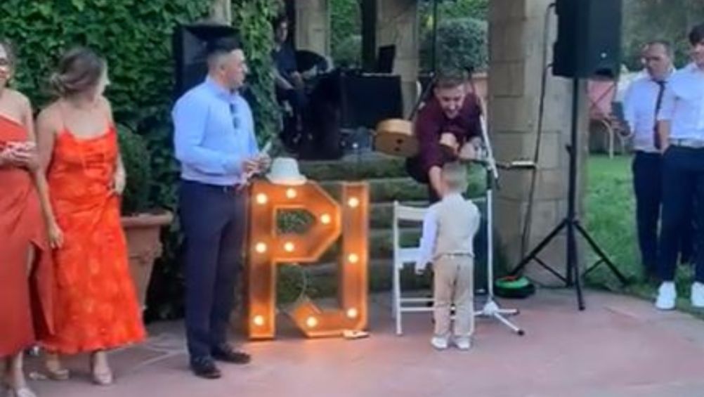 "Cuando tú hijo de 3 años se pasa el juego en una boda el a lo suyo se puede ser más madridista haz tu magia Twiter", escribió el padre desde su cuenta.