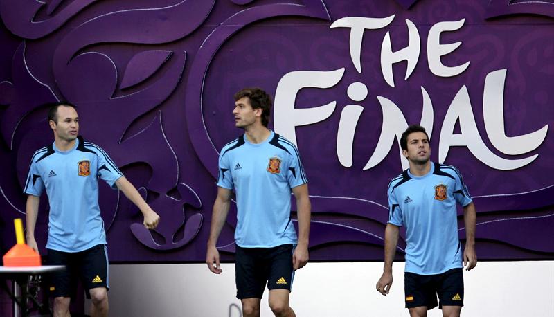 Iniest y Llorente en el entrenamiento de España previo a la final de la Euro l EFE