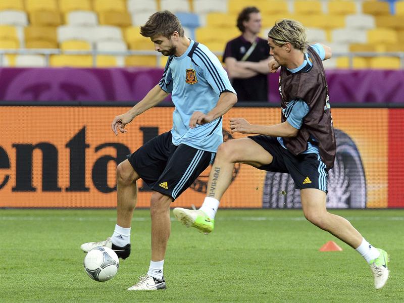 Piqué y Torres peleando el balón l EFE