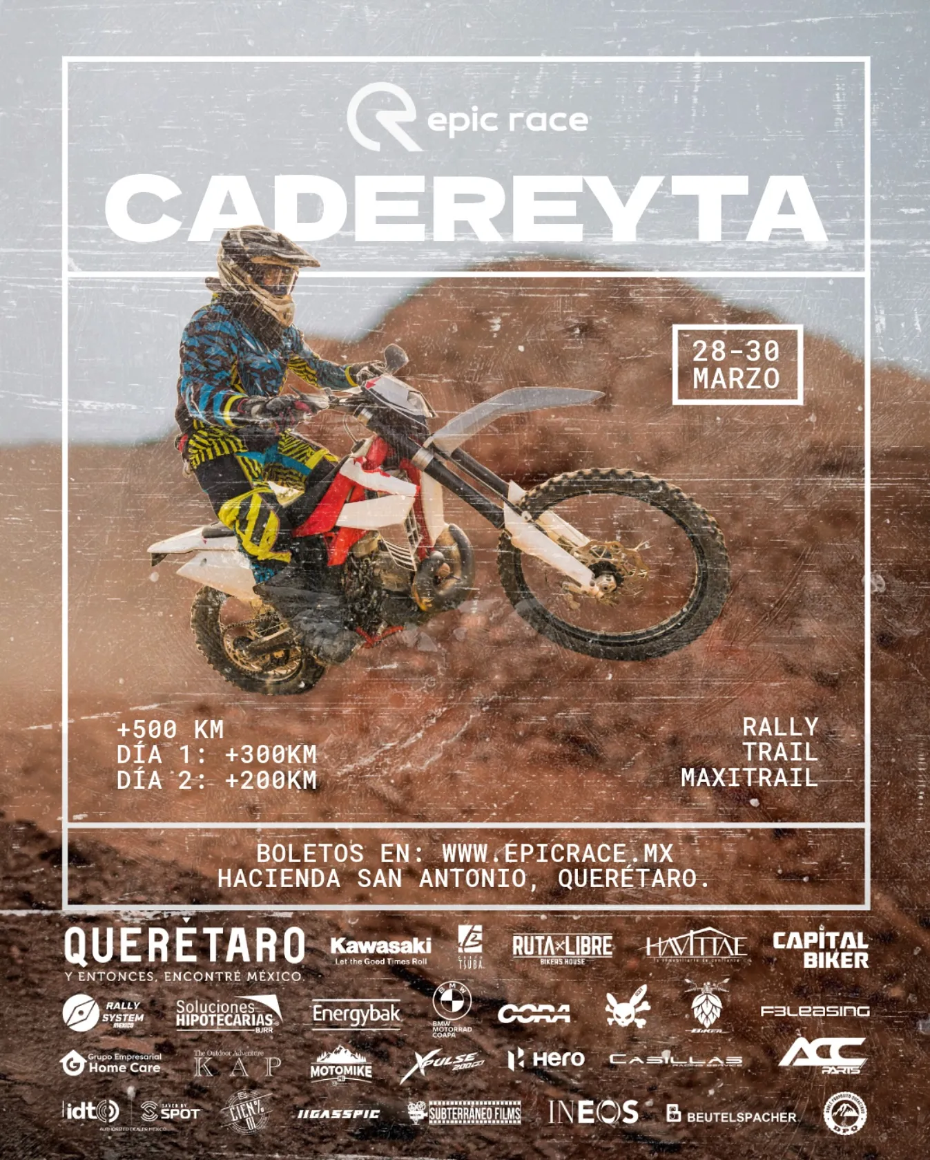 Cadereyta, Querétaro, se convertirá en el epicentro de la velocidad y la adrenalina con la llegada del EPIC RACE, que se llevará a cabo del 28 al 30 de marzo de 2025. Este emocionante evento reunirá a los mejores de la región y pilotos internacionale , quienes enfrentarán una de las competencias más desafiantes del motociclismo, poniendo a prueba su destreza y resistencia en terrenos extremos.