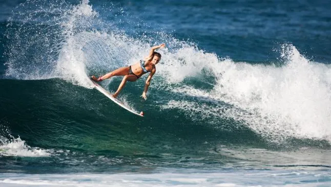 La bella deportista radica en Hawai donde pasa las horas mejorando su estilo sobre su tabla y manteniendo en forma su cuerpo ya que también es modelo de bikinis.