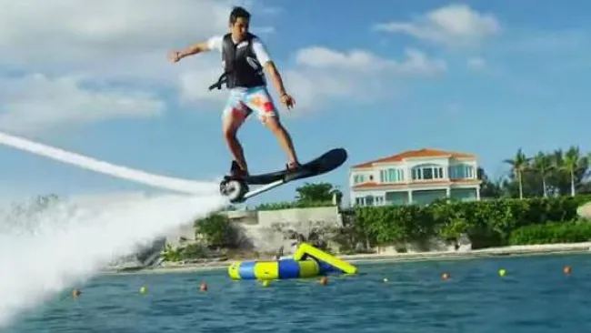Franky Zapata, diseñador francés, lanzó a la venta el Hoverboard, una tabla acuática capaz de elevar al ocupante de esta, hasta cinco metros en el aire a una velocidad de hasta los 400 kilómetros por hora.