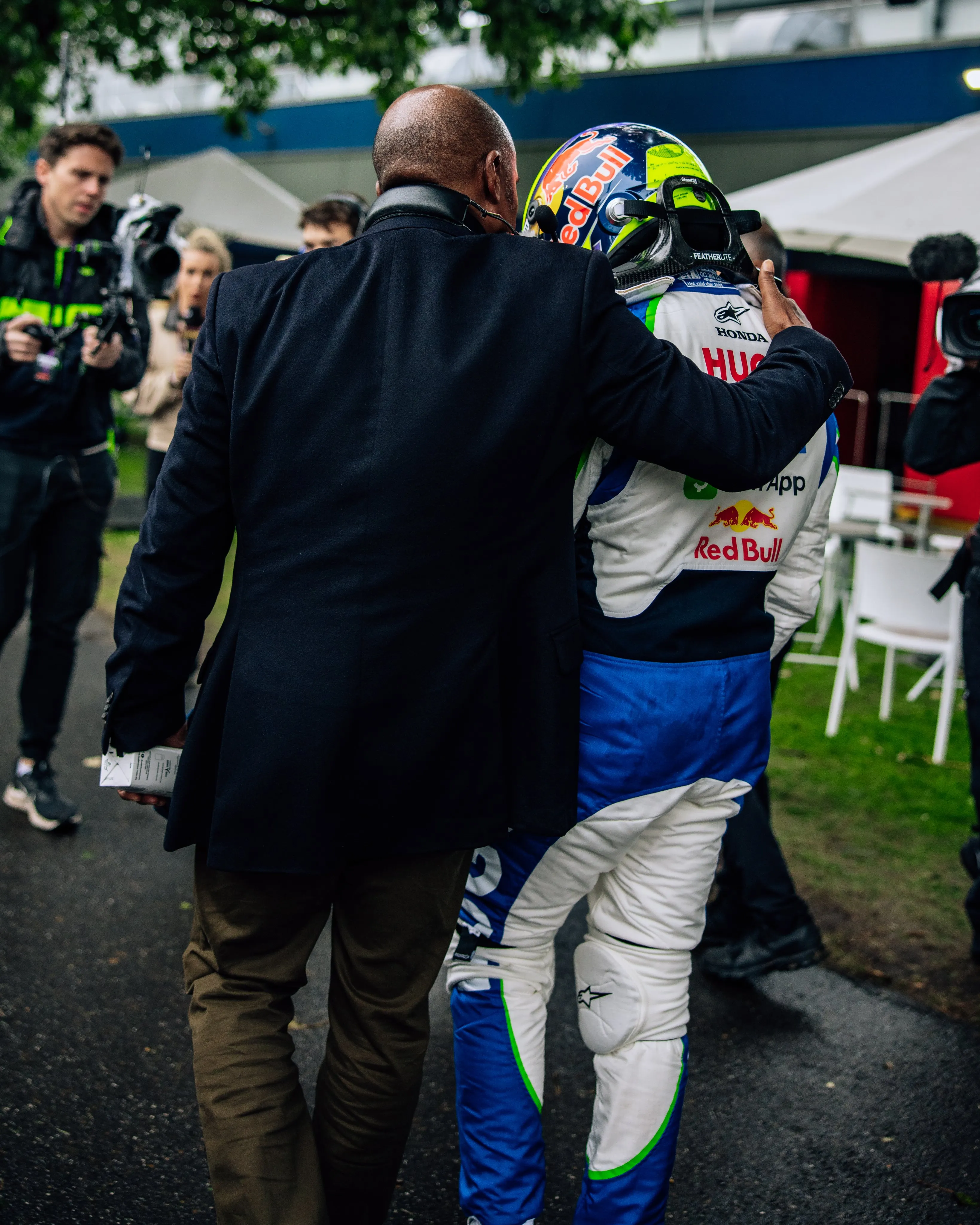Hadjar se mostró afectado por este inicio de carrera detrás de las barreras mientras los oficiales retiraban su coche. Al ver estas imágenes, Anthony Hamilton decidió recorrer el paddock para consolarlo. Cuando Hadjar regresaba a la hospitalidad de Racing Bulls, Hamilton lo encontró y lo abrazó en un momento conmovedor, reflejando su empatía como padre.