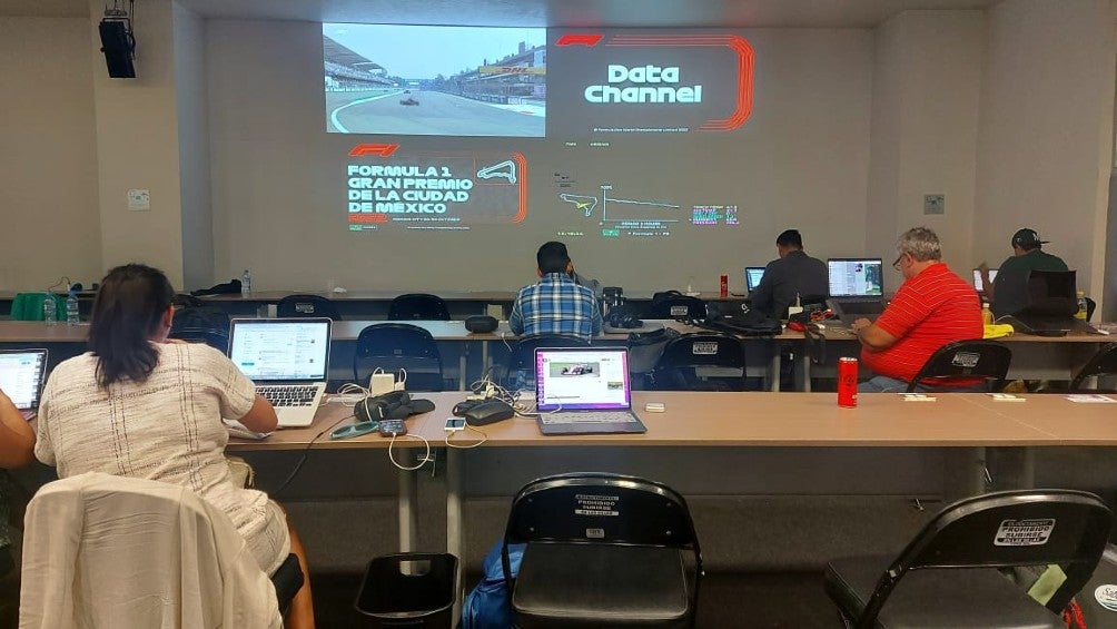 Cuenta con proyectores en las paredes donde se muestra la transmisión de la carrera. El Media Centre tienes las mejores herramientas para que no se vaya ningún dato.