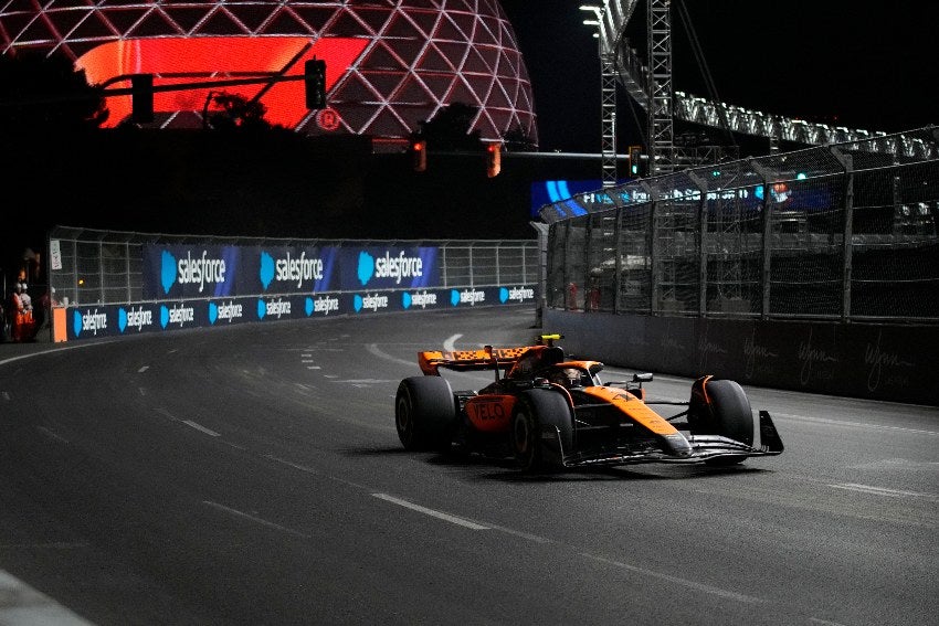 Lando Norris se convirtió en el primer piloto en abandonar el Gran Premio de Las Vegas, pues el piloto de McLaren tuvo un fuerte choque ante el muro y su carro salió a gran velocidad que terminó por estrellarse ante la barra de contención de las primeras curvas del circuito callejero.