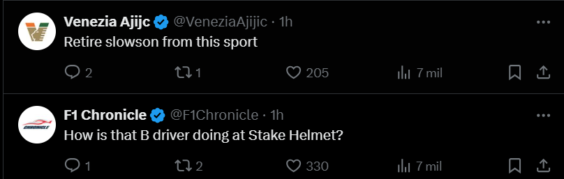 Otro motivo de burla fue que, a excepción de Oliver Bearman que tuvo problemas con su Haas, todos los novatos de esta temporada registraron mejor tiempo que el neozelandés.